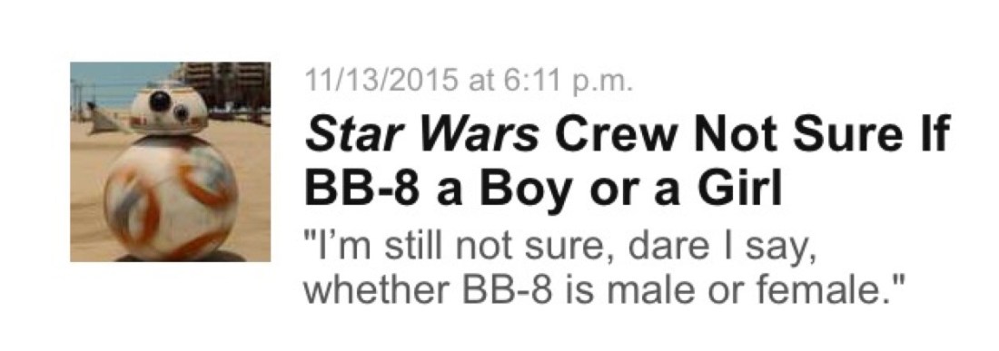 ladybloof Uncategorized December 24, 2015December 4, 2018 1 Minute assuming-dinosaur: snakesandflyingsaucers: reygf: it’s a robot breaking news: robot’s lack of genitals scares the cis Only the cis deal in absolutes. Share this: Share on X (Opens in new window) X Share on Facebook (Opens in new window) Facebook Like Loading... Related Published by ladybloof View all posts by ladybloof Published December 24, 2015December 4, 2018