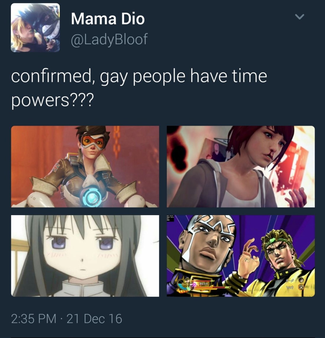 ladybloof Uncategorized January 11, 2017December 4, 2018 1 Minute runawaywithrobots: nelajus: Gay people have temporal powers Confirmed a screenshot of my tweet has this many notes and i want to die honestly Share this: Share on X (Opens in new window) X Share on Facebook (Opens in new window) Facebook Like Loading... Related Published by ladybloof View all posts by ladybloof Published January 11, 2017December 4, 2018