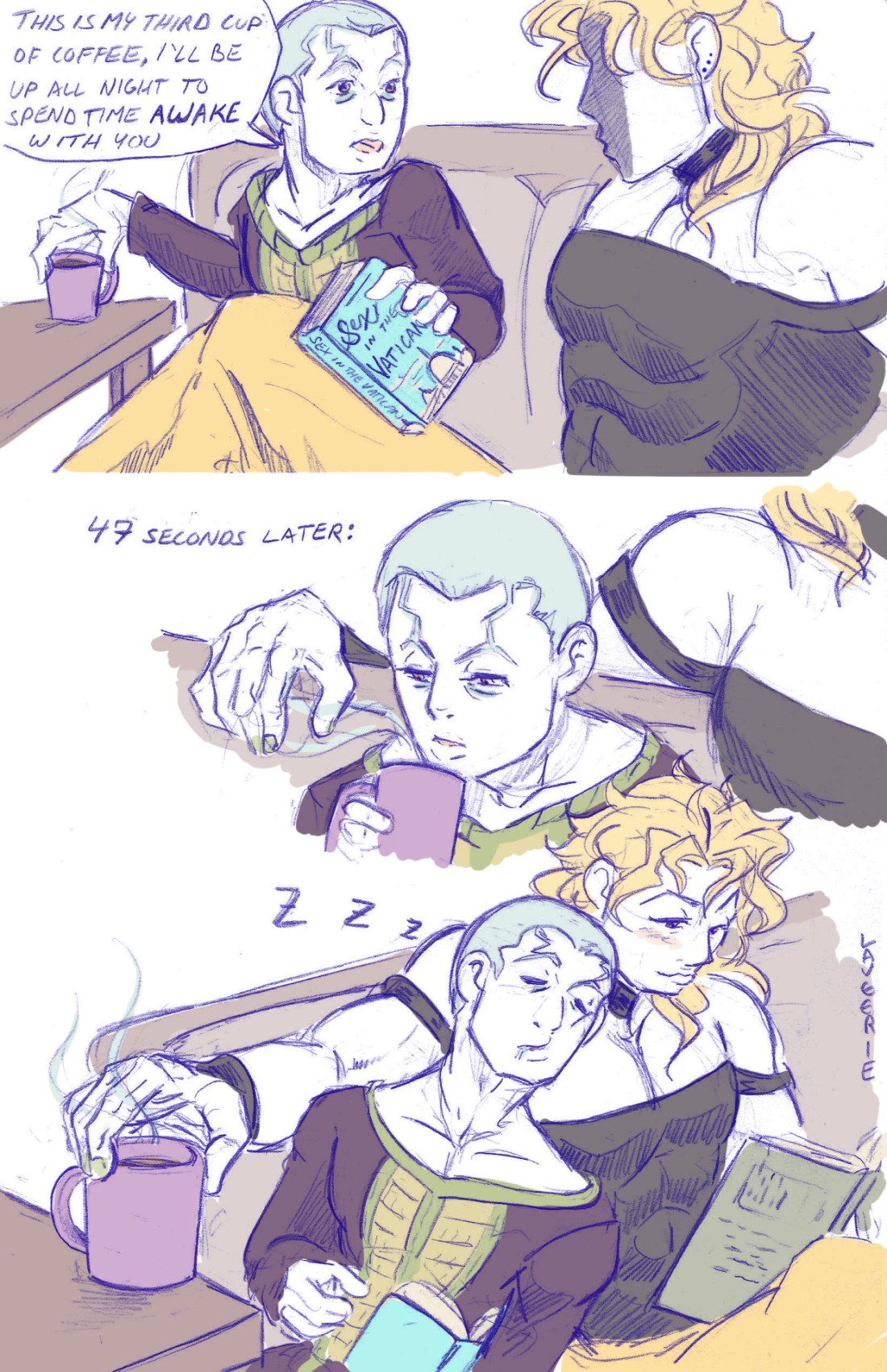Pucci trying to stay awake since him and Dio work on totally different sleep schedules.