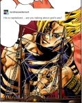 New jojo exhibit in Osaka and they just showed off this Dio art and I love it, I love it so much. Is he in zebra stripped chaps and a banana hammock. Thank you so much araki.