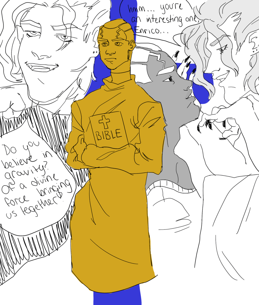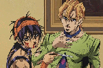 It’s jojo so there’s alts (and most of those match his eyes to his hair: blue eyes with blue hair, purple eyes with purple hair, etc). So purple, green, blue and even pink all join the list … as alts.